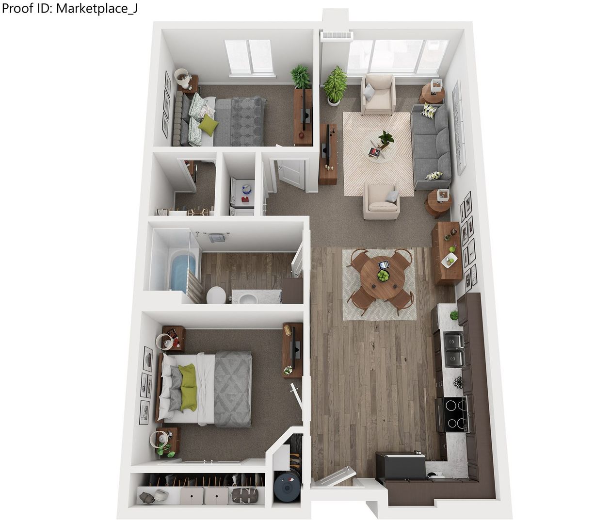 Marketplace offers unique one and two bedroom apartments. The rooftop patio is a great place to gather and enjoy the outside. Each unit smart deadbolt access providing easy and secure access to the unit. High speed internet access in each unit. Modern window coverings, in-unit washer/dryer, quality cabinetry, and stainless-steel appliances are just some of the amenities of these well-appointed apartments.